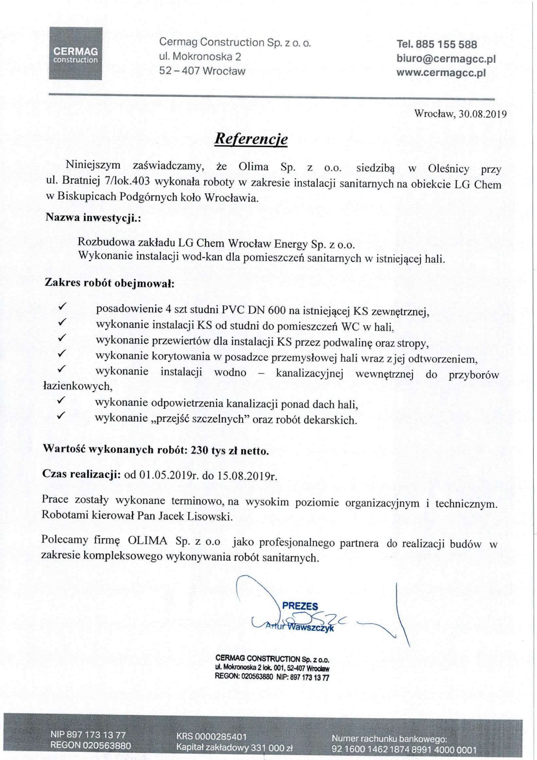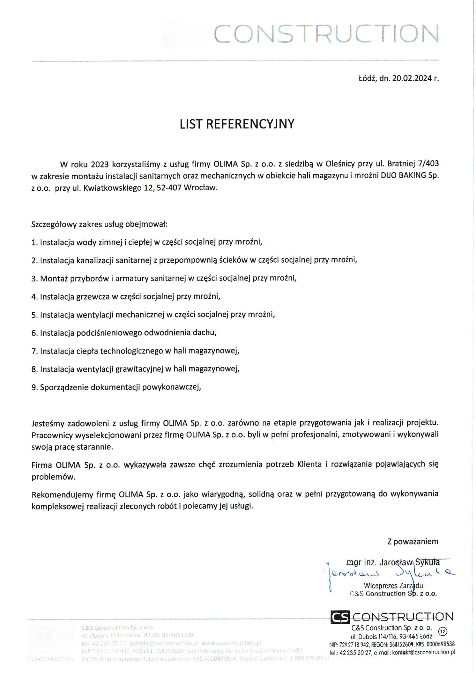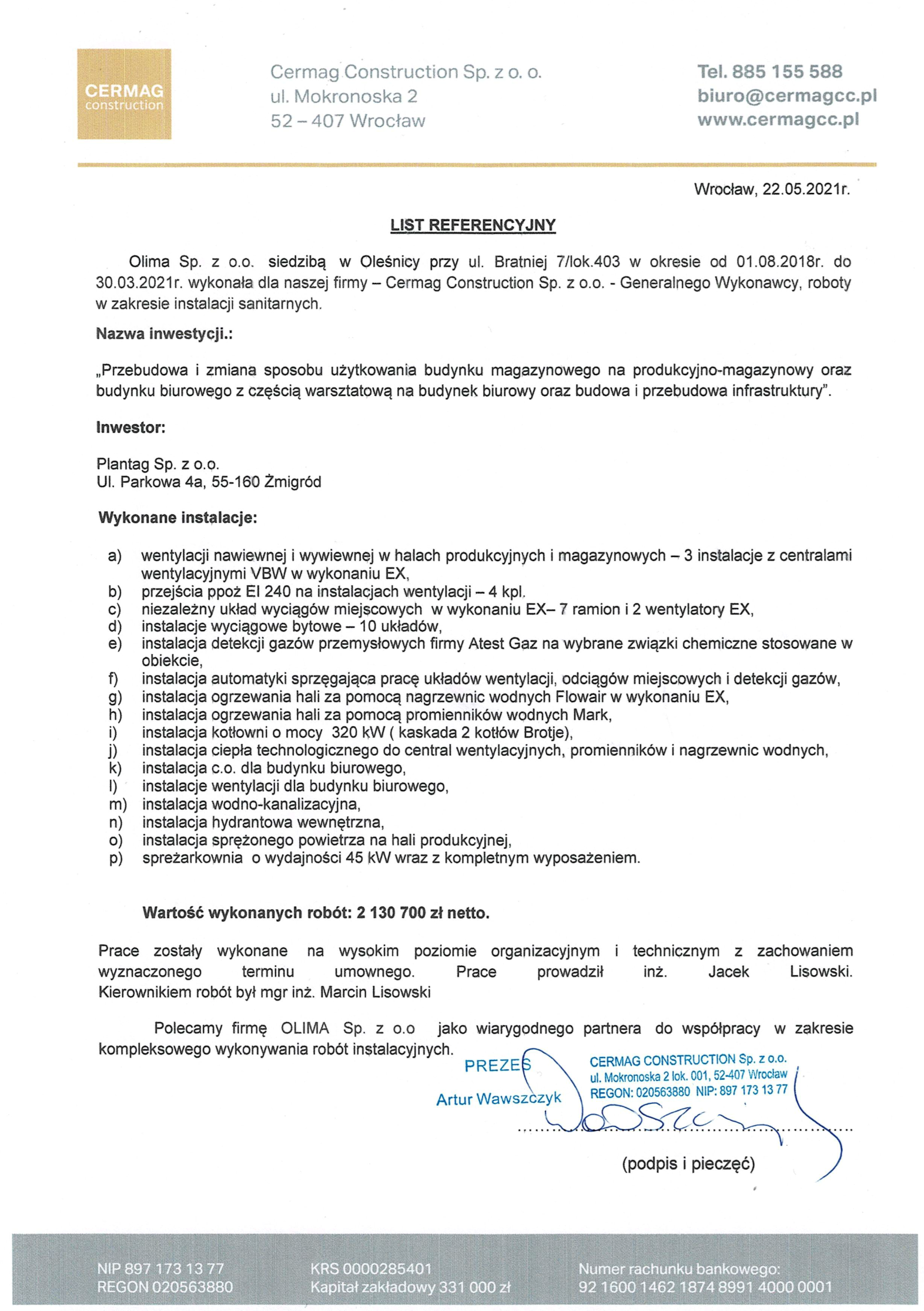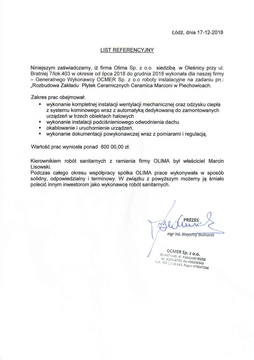 Olima Sp. z o.o.- specjaliści inzynierii sanitarnej